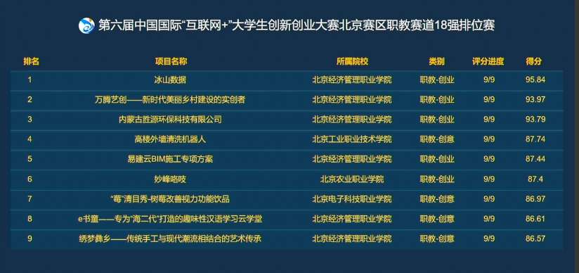 9月8-9日,第六届中国国际“互联网+”大学生创新创业大赛职教赛道北京赛区的一等奖…