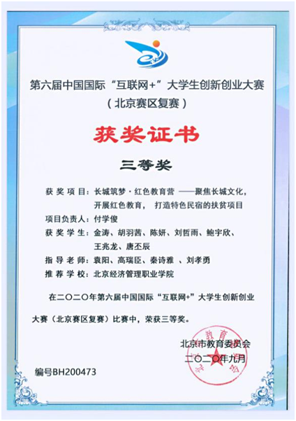 bat365在线平台在2020年北京地区高校大学生优秀创业团队评选中再获佳绩