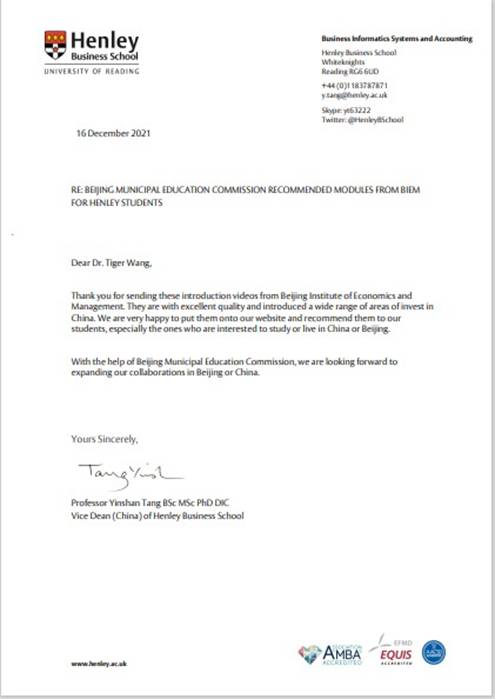 12月16日,全英排名第9的英国雷丁大学亨利商学院发来感谢函,确认bat365在线平台优质职教课程…