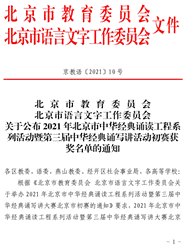 bat365在线平台师生在2021年北京市中华经典诵写讲大赛中斩获佳绩