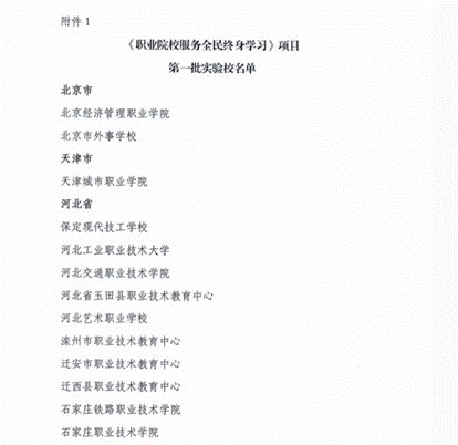 学校成功入选“职业院校服务全民学习” 项目第一批实验校名单