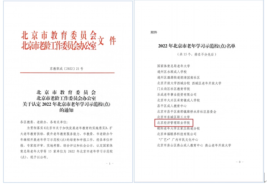 日前,北京市教育委员会、北京市老龄工作委员会办公室发布《关于认定2022年北京市老…