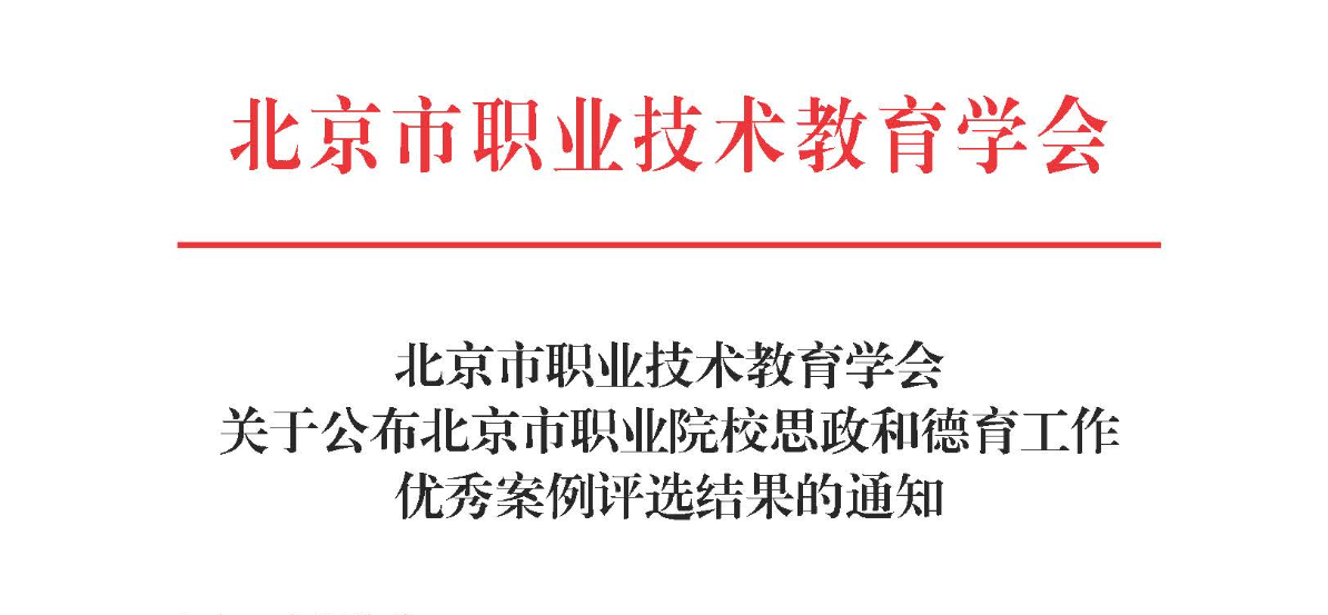 近日,北京市职业技术教育学会公布了北京市职业院校思政和德育工作优秀案例评选结…