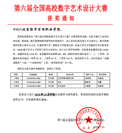 信息学院学生在第六届全国高校数字艺术设计大赛中荣获佳绩