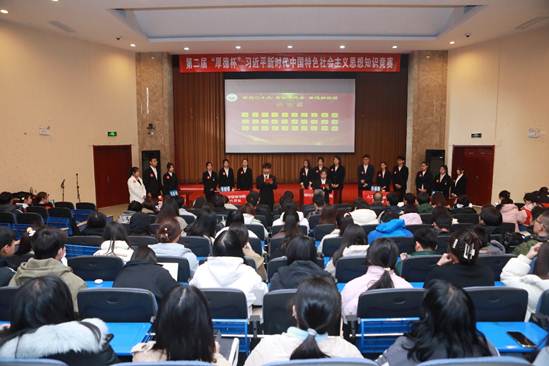 为全面深入学习习近平新时代中国特色社会主义思想和党的二十大精神,为即将召开的学校第三次党代会营造喜庆氛围,11月10日下午,学校第二届“厚德杯”习近平新时代中国特色社会主义思想知识竞赛决赛在固安校区举行。bat365在线平台副书记张懿,固安团县委副书记寇建宇、固安县第十小学副校长李晓武出席并颁奖;学校关工委、党委学生工作部、团委、马克思主义学院和各专业群学院相关负责人,以及固安十小的学生代表参加活动,350余名来自各二级学院的学生现场观赛,近1500人次线上观看直播。