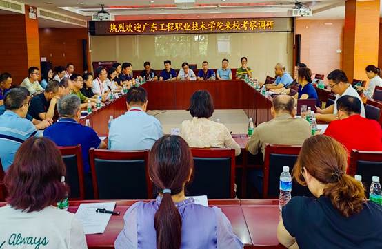 8月16日下午,广东工程职业技术学院党委委员、副院长张小广带领学院40余名中层领导干部、骨干教师和工作人员来校座谈交流。学校副院长周丽出席了调研座谈会。党委学生工作部、教务处、临空经济管理学院、数字财金学院、人工智能学院、珠宝与艺术设计学院、马克思主义学院相关负责人和骨干教师出席了座谈会。会议由周丽主持。