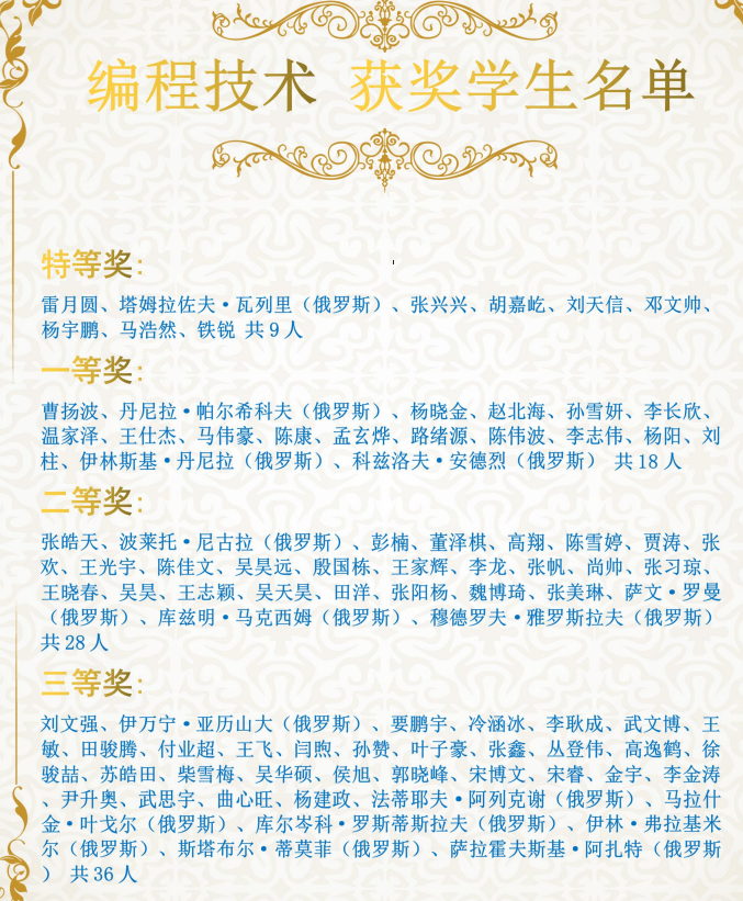 第二届“丝路工匠”编程技术赛项获奖名单