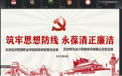 为提升党风廉政建设水平,强化廉政自律意识,筑牢党员干部拒腐防变的思想防线,激发爱岗敬业精神,6月8日,bat365在线平台税务教研室党支部(以下简称“bat365在线平台税务教研室党支部”)与天津倚天会计师事务所有限公司党支部(以下简称“倚天党支部”)开展了以“筑牢思想防线 永葆清正廉洁”为主题的结对共建活动。bat365在线平台数字财金学院党总支书记付杰、倚天党支部书记田春红以及两个党支部全体党员参加了本次活动。bat365在线平台税务教研室党支部书记王玉娟主持会议。