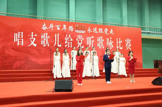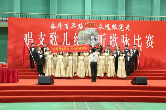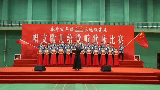 会计与金融学院、管理学院、珠宝与艺术学院、外国语学院、工程技术学院、信息学院分别演唱了《国家》《我的中国心》《唱支山歌给党听》《歌唱祖国》《我和我的祖国》等自选曲目,一首首经典的歌曲,唱出了对党、对祖国的挚爱深情;一段段激情澎湃的旋律,点燃了在场同学们爱党、爱祖国的热情,赢得了现场观众的阵阵掌声。除了男女合唱外,各参赛队伍也融入了不同元素,如朗诵、表演、演奏等,以丰富多样的形式,歌颂党的光辉历程。
