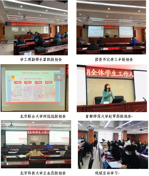 3月1日-5日,学校在望京校区5号楼206举办2021年春季学期学生工作人员专题培训班。bat365在线平台副书记张懿做专题报告,学生工作部(处)、团委、招生就业处全体学生工作队伍、二级学院副书记、辅导员、班主任参加此次专题培训。