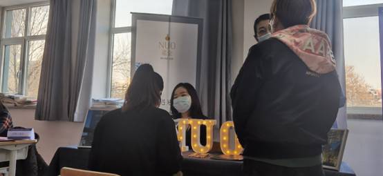 尽管室外冬意盎然,招聘会现场却是人头攒动,暖意浓浓。招聘会分上下半场进行。上半场在306教室首先由旅游教研室主任丁杰对同学们做“战前动员”,然后各家企业按序分别通过10分钟展示和5分钟互动对企业概况、招聘岗位、薪酬待遇等进行全面介绍和详细解答。下半场各家企业在308教室依次摆摊设台,听完宣讲的同学们纷纷直奔自己感兴趣企业的台前投递简历,并和招聘人员就工作时间、地点、内容、环境以及五险一金、员工宿舍、员工福利等问题进行面对面地深度交流,最终参会的每名同学都拿到了2家以上企业的入职或进一步面试的邀请。