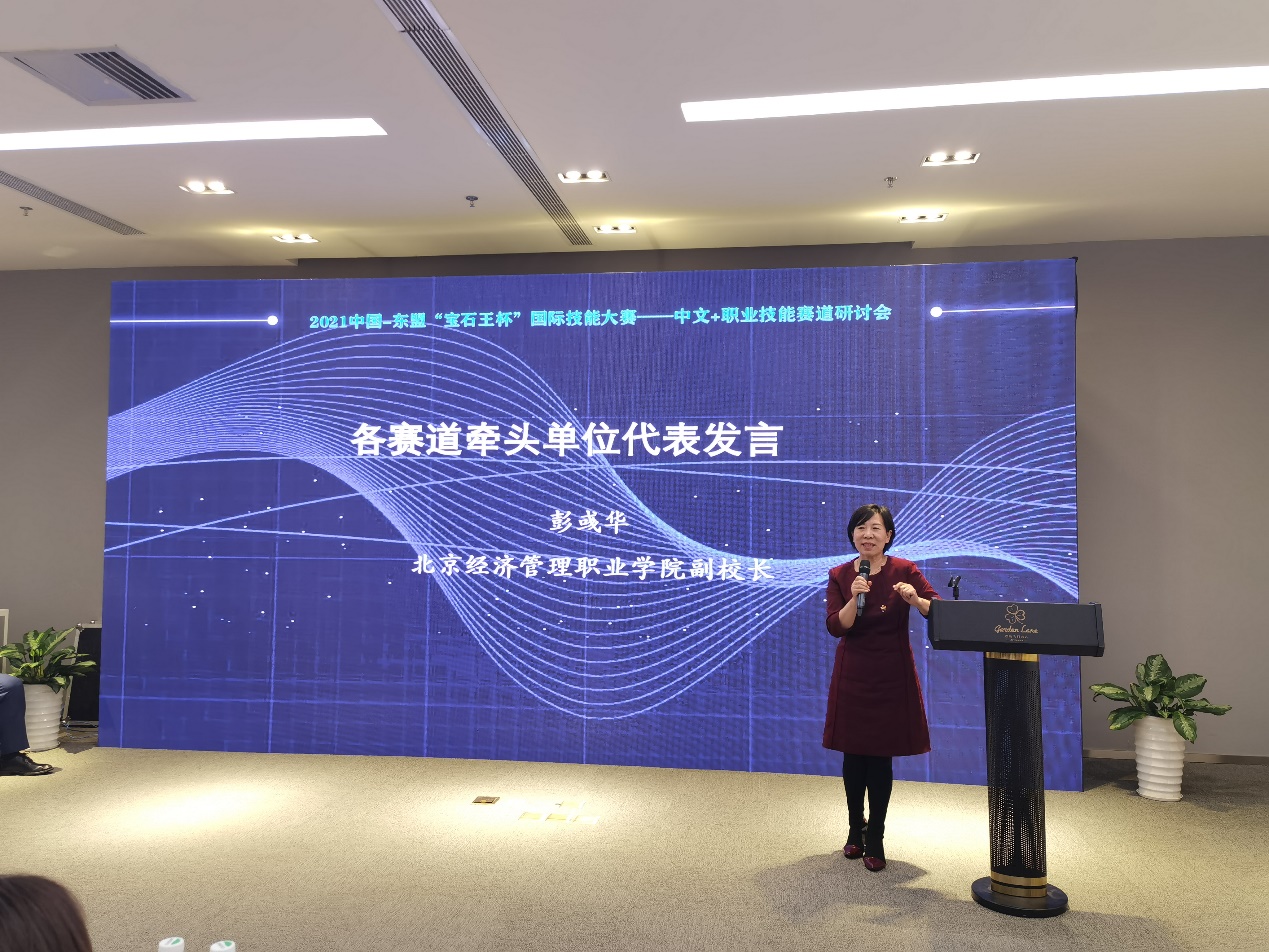 彭彧华作为“中文+职业技能”赛道牵头负责人做了主旨发言。她用“1、2、3”一组数字高度概括了学校国际教育的发展历程以及取得的成绩和成功经验,同时阐述了学校“十四五”国际教育发展的规划愿景。