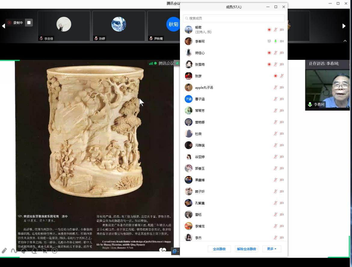 7月31日晚,学校举行“国大师,云讲坛”视频讲座,珠宝与艺术设计学院师生60余人参加。讲座由珠宝与艺术设计学院学生党支部书记杨君主持。