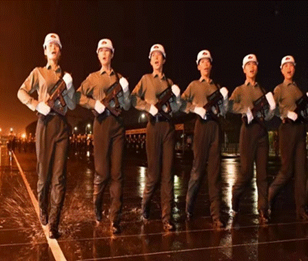 春节期间,接到学校关于选拔优秀学生参加国庆阅兵任务的指示后,会计与金融学院高度重视,在学生中进行了严格选拔,范娜同学最终推荐入选民兵方阵。3月8日,范娜同学进入黑庄户训练基地,5月23日,正式进驻阅兵村,10月1日,她在民兵方阵10排第一名基准兵的位置亮相天安门。213个日日夜夜里与她相伴的是75㎝,30㎝,96m,128步,在阅兵村的训练场上她永远以最高的标准要求自己,她给自己定的口号是“宁肯脱掉几层皮,队列也要走整齐”“把晚上当成白天练,把自己当成男兵练”。训练过程中有汗水,也有泪水,她的训练时间经常是5+2,白+黑,即便腿脚酸痛,被晒得黝黑发红依旧咬牙坚持,在长达7个月的艰苦训练中,她穿坏了三双训练靴、脚上磨出了无数的水泡,衣服每天湿透五六次,最终做到了“走百米不差分毫,走百步不差分秒”。