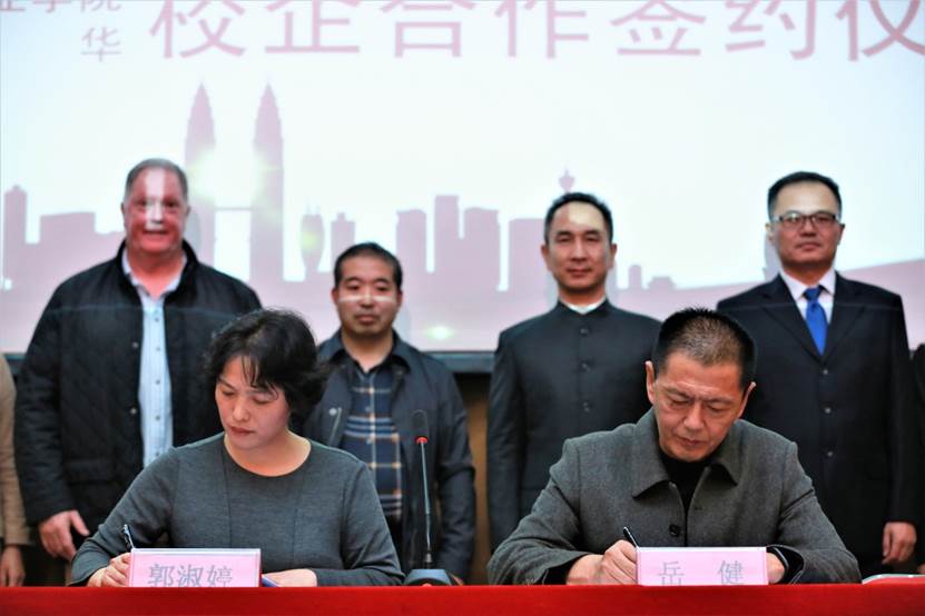 校企双方工程技术学院院长岳健与采薇君华董事长郭淑婷博士签署了合作协议。