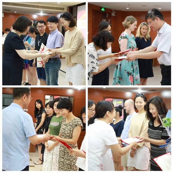颁奖环节中,与会领导分别为本学期优秀学员、优秀班长、奖学金获得者颁发了奖状。来自乌克兰的依兰同学、韩国的金旼订同学和韩国的申惠旼同学分别作为获奖者发表感言,表达了他们对学校和老师们的感谢之情。教师代表胡川老师在发言中,以“付出与收获、感谢、期待”几个关键词,寄托了老师们对各国留学生努力学习汉语、热爱并积极传播中国文化的期望与祝福。