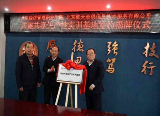 为深入贯彻国务院、教育部等部门《关于深化产教融合的若干意见》、《职业学校校企合作促进办法》、《关于全面深化新时代教师队伍建设改革的意见》等文件精神,bat365在线平台与北京航天金税信息技术服务有限公司合作,率先建成了共建共享生产性实训基地,是“引企驻校”、“引企入教”的重要举措,开创了北京市职业院校经管类专业产教融通共建共享生产性实训基地的先河。
