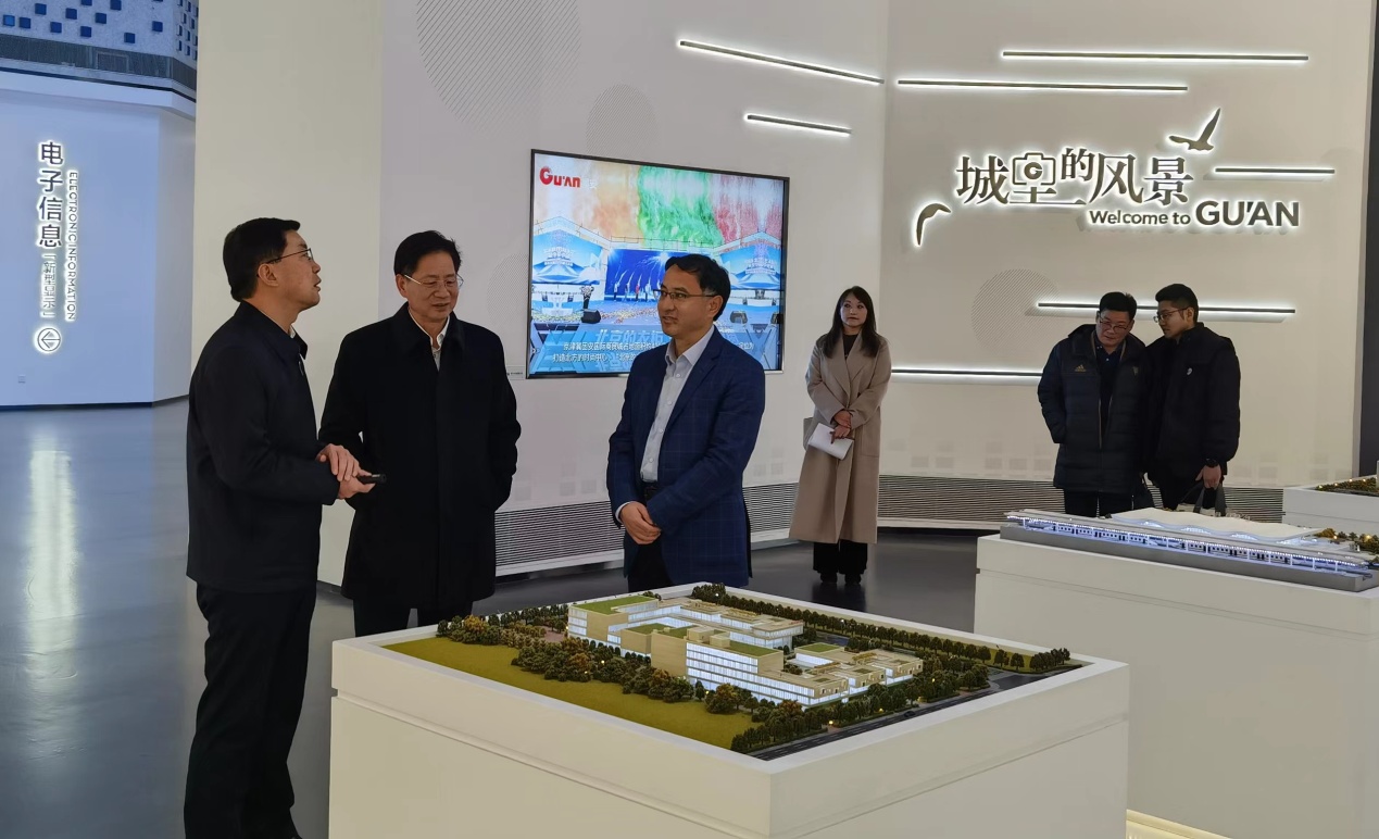 在固安县县委书记付顺义的陪同下,bat365在线平台书记陈刚、副院长周丽与北京工美集团党委书记、董事长段体玉一行,先后考察调研了固安县规划馆、固安卫星导航产业园、固安县于成龙文化街。