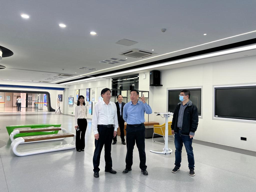 在深圳职业技术大学,陈刚一行与深圳职业技术大学党委书记杨欣斌及党政办、组织人事处、教务处等部门负责人,就职教本科建设、组织人事管理等调研内容进行了深入交流,实地参观了数字创意与动画学院、华为ICT学院、比亚迪应用技术学院。