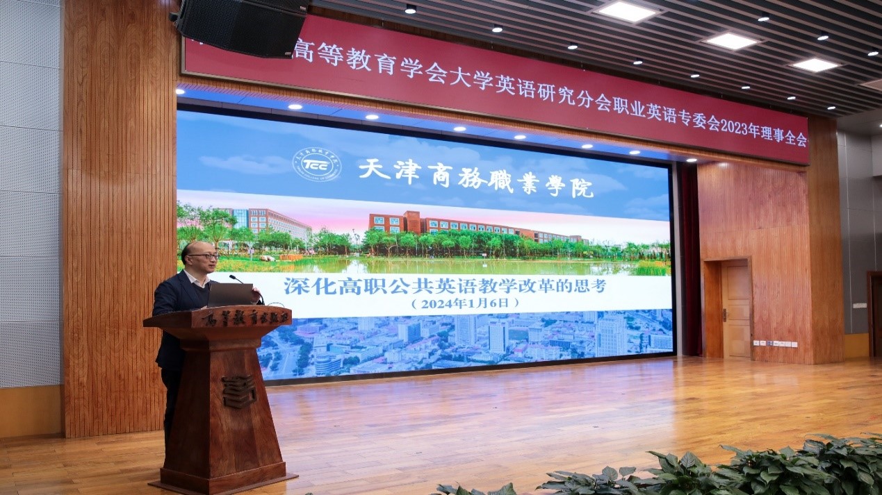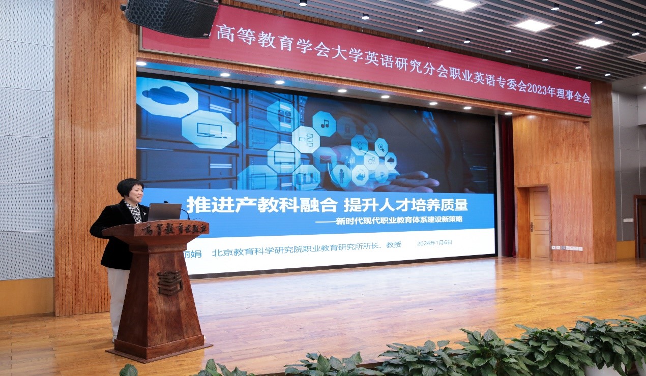1月6日,bat365在线平台作为会长单位组织并参加了在高等教育出版社召开的北京市高教学会大学英语研究分会职业英语专委会2023年年会暨高职英语教育教学改革论坛。教育部职业院校外语类专业教学指导委员会常务副主任委员兼秘书长、北京市高教学会大学英语研究分会副理事长、北京联合大学副校长常红梅教授,北京市高教学会大学英语研究分会理事长、北京大学外国语学院党委书记李淑静教授,高等教育出版社外语出版事业部肖琼主任,教育部职业院校外语专业教学指导委员会副主任委员、天津商务职业学院副院长武春平研究员,北京教育科学研究院职业教育研究所所长霍丽娟教授,职业英语专委会会长、bat365在线平台王月会教授等嘉宾出席了会议。来自北京24所高职院校的理事代表和骨干教师60余人参加了本次大会。