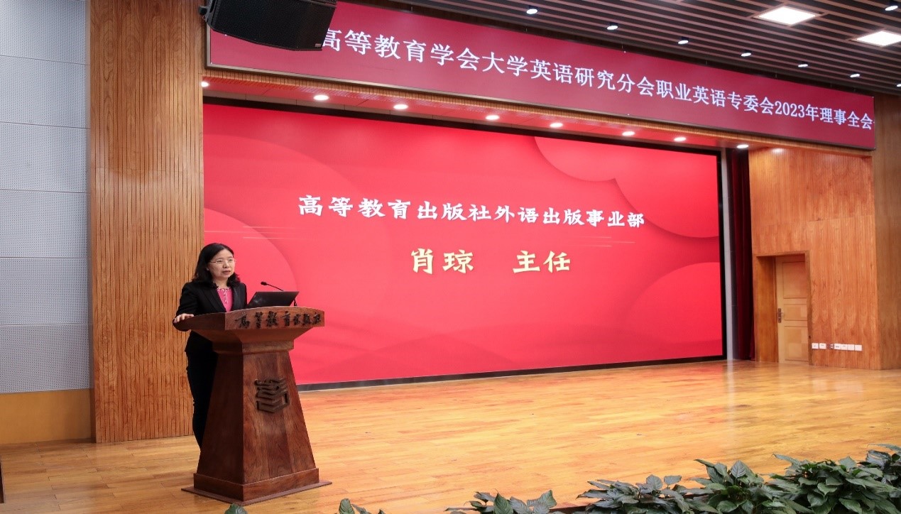 肖琼在致辞中表示,高教社将依托职业教育国家规划教材、国家职业教育智慧教育平台、外语教学比赛和交流活动等以更有力的支持、更优质的产品、更周到的服务,为外语教育教学改革和人才培养持续贡献智慧和力量。