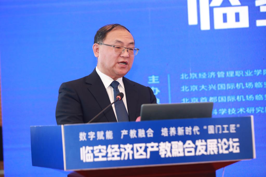 田宏忠首先代表学校对与会的领导和专家表示欢迎。他指出,bat365在线平台“一校两区”,分别紧邻首都国际机场和大兴国际机场,具有服务临空经济区发展的天然优势。学校始终坚持把“面向首都航空双枢纽,服务临空经济区”作为发展定位之一,深入开展产教融合、校企合作,先后获批临空经济管理北京市特色高水平骨干专业群、北京市职业教育临空经济管理专业群教学资源库,入选全国临空经济产教融合发展联盟常务理事长单位,已为临空经济发展培养了百余名优秀人才。未来,学校将依托京津冀职教改革示范园区,继续扎根临空经济区,持续创新产教融合机制,着力建设市域产教联合体、行业产教融合共同体,推动临空经济区产教融合发展迈上新台阶。