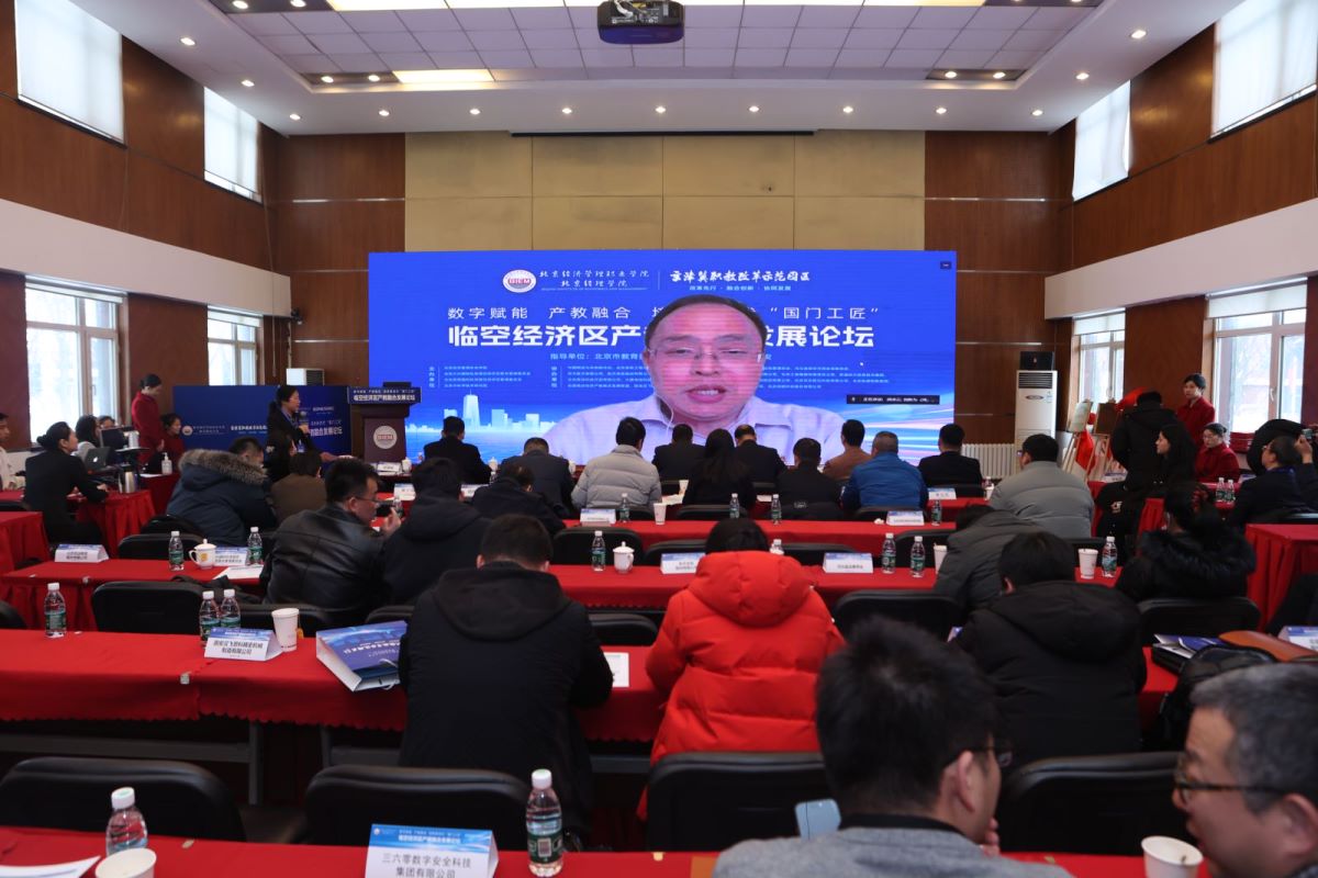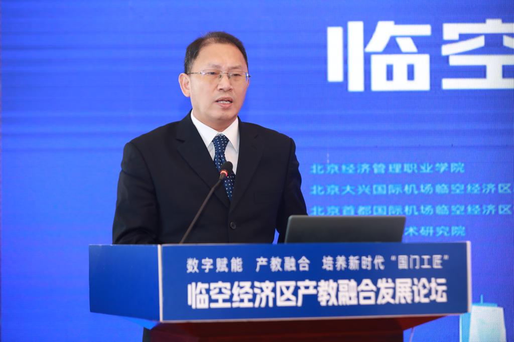 北京大兴国际机场临空经济区联合管理委员会副主任黄玉刚到会致辞。他表示,大兴国际机场临空经济区联合管理委员会将充分发挥大兴机场临空经济区的产业特色优势,大力支持京津冀职教改革示范园区高标准建设,逐步探索与高校合作创新临空经济产业人才培养协同机制,深化临空经济特色领域产教融合,加速培育临空经济区产业高素质应用型、复合型、创新型人才。