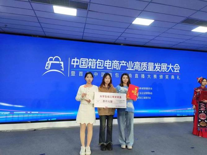 临空经济管理学院彭洋、曹伟杰、郭迎晴同学参加首届中国箱包电商直播大赛并获奖。