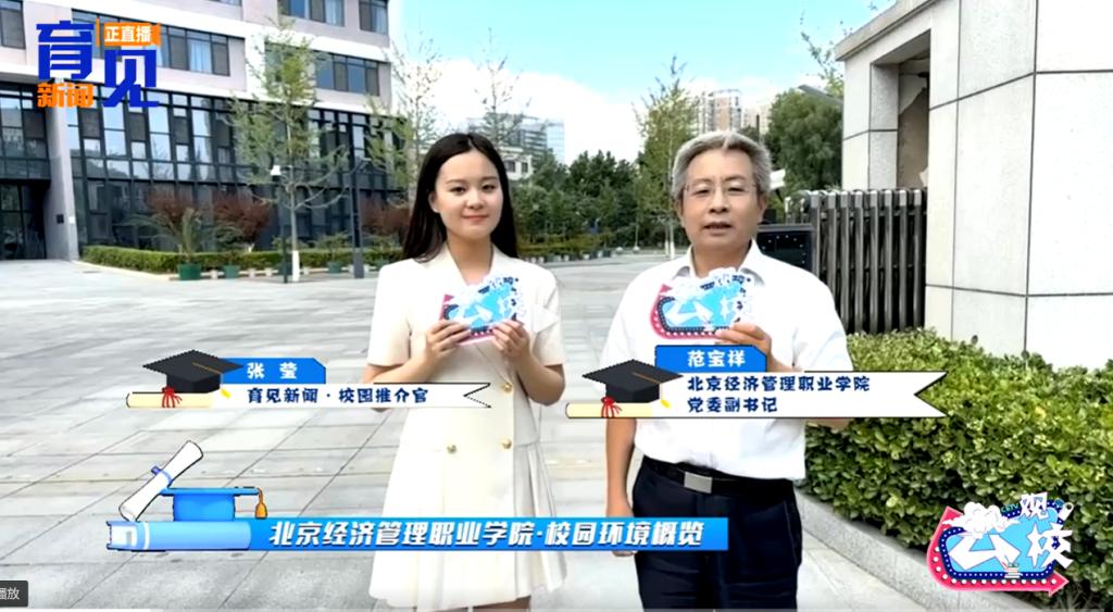 直播中,bat365在线平台副书记范宝祥为中国教育电视台《育见新闻》校园推介官张莹记者热情介绍了学校的校园景观和文化底蕴,并对学校的专业设置、食宿生活、实训条件等多方面进行了深入的阐述和全面细致的介绍。