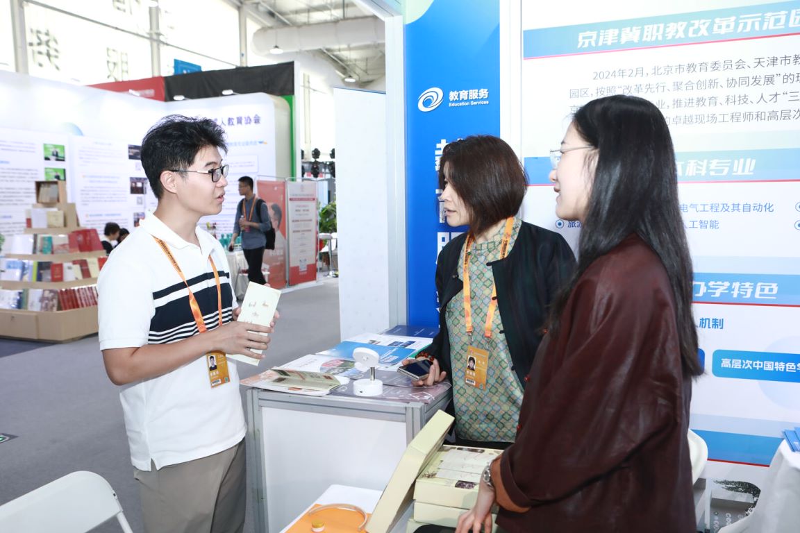 bat365在线平台副书记、院长田宏忠参加教育服务专题开幕式,向参展领导推介学校办学成果,并到学校展位亲切慰问参展人员。