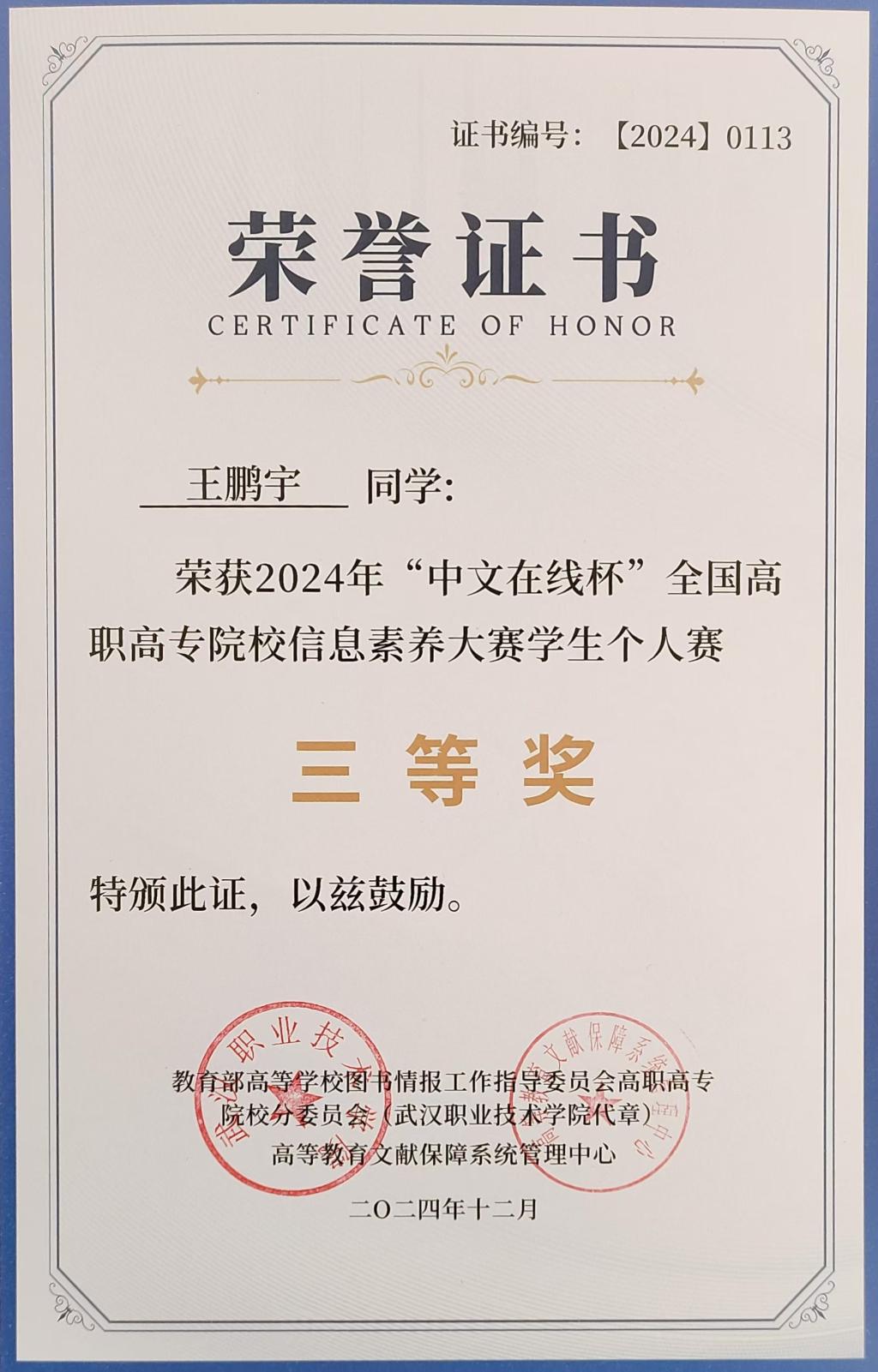 自今年9月份启动高职高专信息素养大赛以来,学校图书馆高度重视,组织指导教师开展培训和辅导,参赛学生认真准备、刻苦练习,从市赛到国赛一路过关斩将,最终取得优异成绩。学校图书馆将继续以此项大赛为契机,提升bat365在线平台大学生信息素养水平,发挥以赛促教、以赛促学作用。