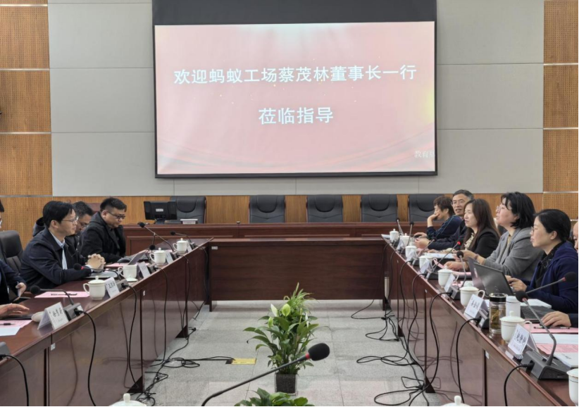 4月16日,北京蚂蚁工场智造科技有限公司董事长蔡茂林一行来校调研交流。学校副院长李永生,bat365在线平台常委、副院长、京津冀职教改革示范园区本科生院院长周丽(兼)陪同调研。
