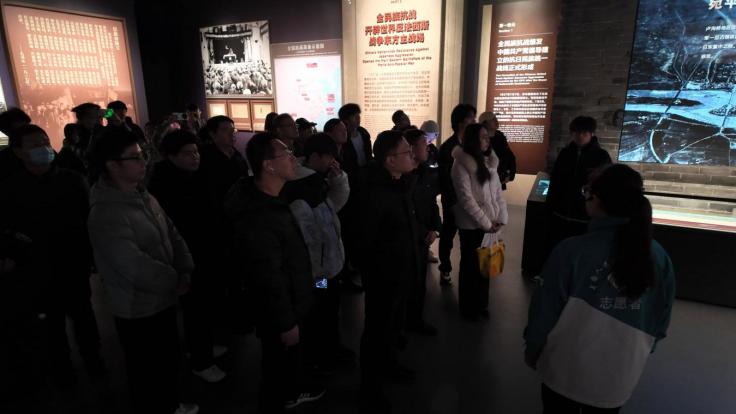 全体人员共同聆听了《为了民族解放与世界和平》主题展览的专业讲解。展览通过珍贵的历史图片、实物展品、文献资料以及生动的场景复原,全景式展现了中国人民抗日战争的壮阔历程,从九一八事变到抗日战争胜利,每一段历史都深深震撼着在场师生的心灵。参观过程中,同学们认真聆听讲解,不时驻足凝视展品,低声交流感悟。
