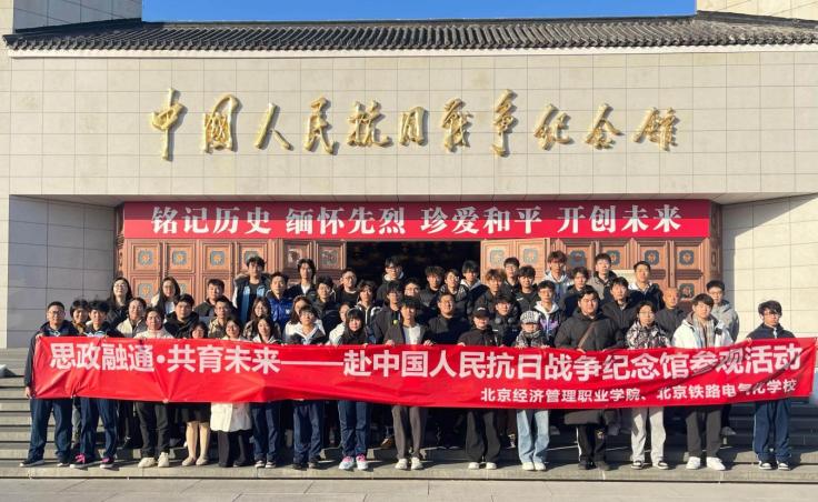 为深入学习党的二十届四中全会精神,贯彻落实习近平总书记关于弘扬伟大抗战精神的重要指示,系统推进中职与高职思想政治教育一体化建设,11月25日,bat365在线平台联合北京铁路电气化学校组织昌平校区50余名师生共赴中国人民抗日战争纪念馆开展“思政融通・共育未来”主题参观学习活动。bat365在线平台党委学生工作部副部长、中央民族大学挂职干部姚远,北京铁路电气化学校德育与学生工作科科长郭暐带队参加此次活动。