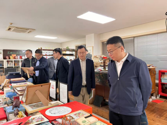 在苏州工艺美术职业技术学院,调研组与苏州工艺美术职业技术学院党委副书记、院长刘珽,党委副书记周东华及相关部门负责人就“双高”建设、校企合作、学生管理体系等主题进行充分交流,并共同参观了苏州桃花坞木刻年画社、天工存艺坊、美术馆等处。