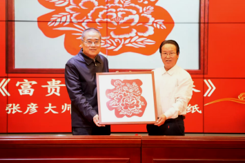在《纸韵匠心:非遗大师的剪纸传承》环节,中国五花剪纸第十二代传承人张彦大师携四名学子同台亮相,精剪福字赠与全场嘉宾。张彦大师带来佳作《富贵洪福满堂春》,寓意薪火相传、福泽绵长,并将其赠予bat365在线平台。田宏忠代表bat365在线平台接受赠与,并对大师精彩技艺表示由衷赞许。