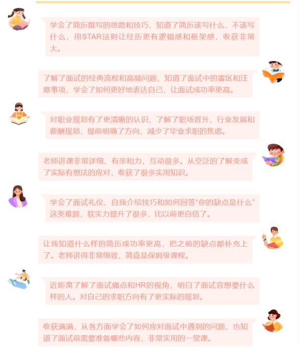 参与系列活动的同学纷纷表示,通过活动收获良多。今后就业指导工作室将进一步结合学生需求,不断丰富活动内容和形式,为学生职业发展提供更多指导和服务。