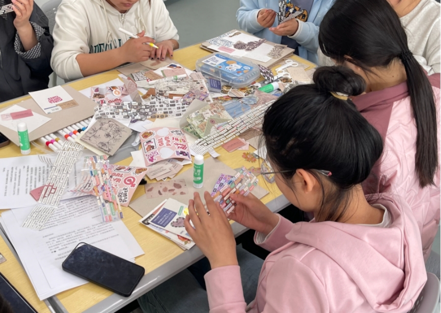 昌平校区活动围绕“自我探索”展开,依次设置了拼贴诗介绍、破冰交流、自我探索冥想、拼贴创作及作品分享等环节。初识拼贴诗:活动带领者介绍了拼贴诗的形式,无需从零写作,只需剪裁、组合现成素材,创作属于自己的诗。破冰交流:同学们简短分享了参与活动的心情,在轻松氛围中建立起温和的信任与连接。自我探索冥想:通过呼吸放松与内在觉察,大家逐步从外在角色回到自身体验,在安全、放松的氛围中开展自我表达。拼贴创作:同学们从丰富的素材中自由挑选、剪裁、组合,逐渐拼贴出属于自己的“诗”。有人用自然元素表达内心的渴望与安静;有人用破碎的结构呈现矛盾与拉扯;也有人拼贴出充满力量的词语,像在对自己说鼓励的话。很多人进入沉浸状态,情绪与体验通过手的动作自然流动出来。作品分享:大家围坐分享创作思路与感受,在倾听与反馈中增进对自我的理解,也获得了支持与共鸣。这正是表达性艺术的核心,让无法言说的部分,被看见、被承载。
