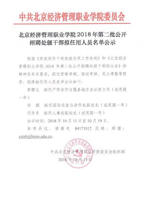 bat365在线平台2018年第二批公开招聘处级干部拟任用人员名单公示