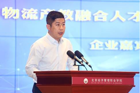 企业嘉宾代表薛志坤发言,讲述了他从京东物流产教融合人才培养模式的探索和思考。