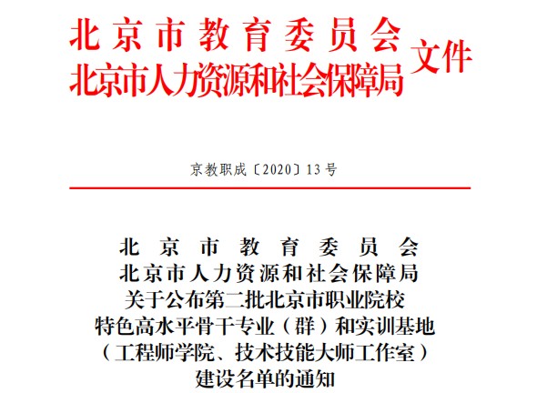 热烈庆祝bat365在线平台成功入选第二批北京市职业院校特色高水平骨干专业…