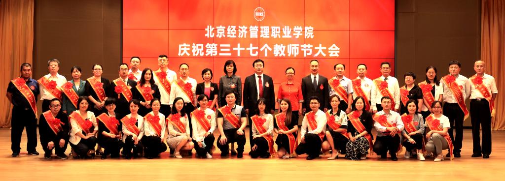 学校领导与获奖代表合影9月10日,学校在望京校区报告厅召开“庆祝第37个教师节表彰…