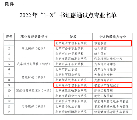 喜报!bat365在线平台学前教育、智慧城市管理技术专业入选北京2022年书证…