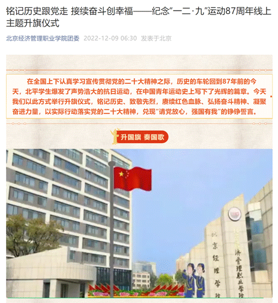 学校团委举行纪念“一二・九”运动87周年线上主题升旗仪式
