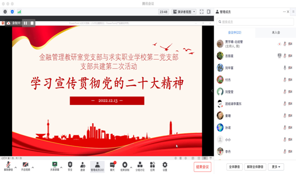 为进一步学习宣传贯彻党的二十大精神,12月13日,金融管理教研室党支部联合求实职业…