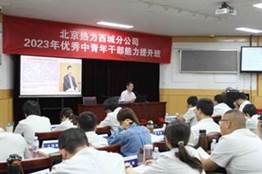 9月1日,学校承办的北京热力西城分公司2023年优秀中青年干部能力提升培训班在京能集团党校顺利结业。本次培训班于8月28日开班,以全脱产集中线下学习的方式开展,历时5天,39名中青年人才储备库人员参加学习。西城分公司纪委书记、工会主席张媛主持了开班仪式。党委书记、总经理罗铮作开班动员,并围绕京能集团及北京热力“十四五”发展规划讲授了开班第一课。