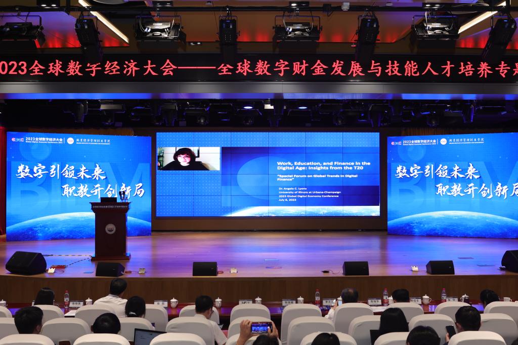 主旨单元第一板块中,来自为G20贡献智慧与思想的重要平台——二十国智库(T20)的美国伊利诺伊大学安吉拉·里昂教授发表题为《数字时代的就业、教育和金融》的专题演讲。她从数字经济背景下可持续发展的全球重要性、围绕数字化的数字经济和工作场所、数字时代的教育和培训、数字金融的普惠性等四个主题以及数字金融领域的金融科技的生态系统、弥合数字技能的鸿沟、不让任何人掉队、转向以人为本的设计、长期的金融安全5个关键机遇等方面展开论述。