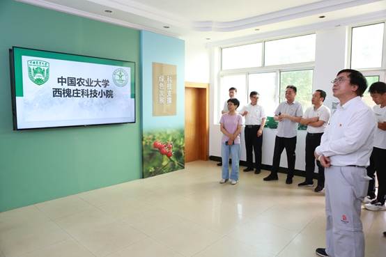 此次主题党日活动专门组织安排了通州区永乐店镇西槐庄科技小院实地调研考察。西槐庄科技小院揭牌以来,中国农业大学已为这里派驻了多批研究生,学生们来到广阔的农村土地,用所学知识为乡村振兴贡献了青春和智慧。今年5月,习近平总书记给中国农业大学科技小院同学们回信,提出殷切期望,并向全国广大青年致以节日的祝贺。总书记寄语广大青年,要志存高远、脚踏实地,把课堂学习和乡村实践紧密结合起来,厚植爱农情怀,练就兴农本领,在乡村振兴的大舞台上建功立业,为加快推进农业农村现代化、全面建设社会主义现代化国家贡献青春力量。活动现场,大家认真重温了习近平总书记“给科技小院的回信”精神,到田间地头深入了解农业作物的成长环境和科学监测数据。
