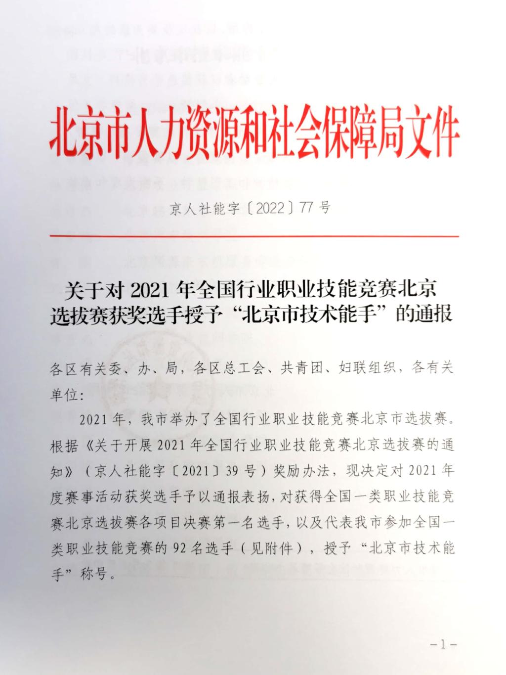 近日,北京市人力资源和社会保障局公布了“北京市技术能手”获得者名单,bat365在线平台临空经济管理学院学生赵希赛被授予“北京市技术能手”称号。