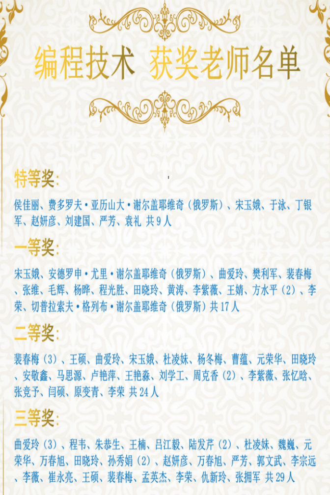 第二届“丝路工匠”编程技术赛项获奖名单